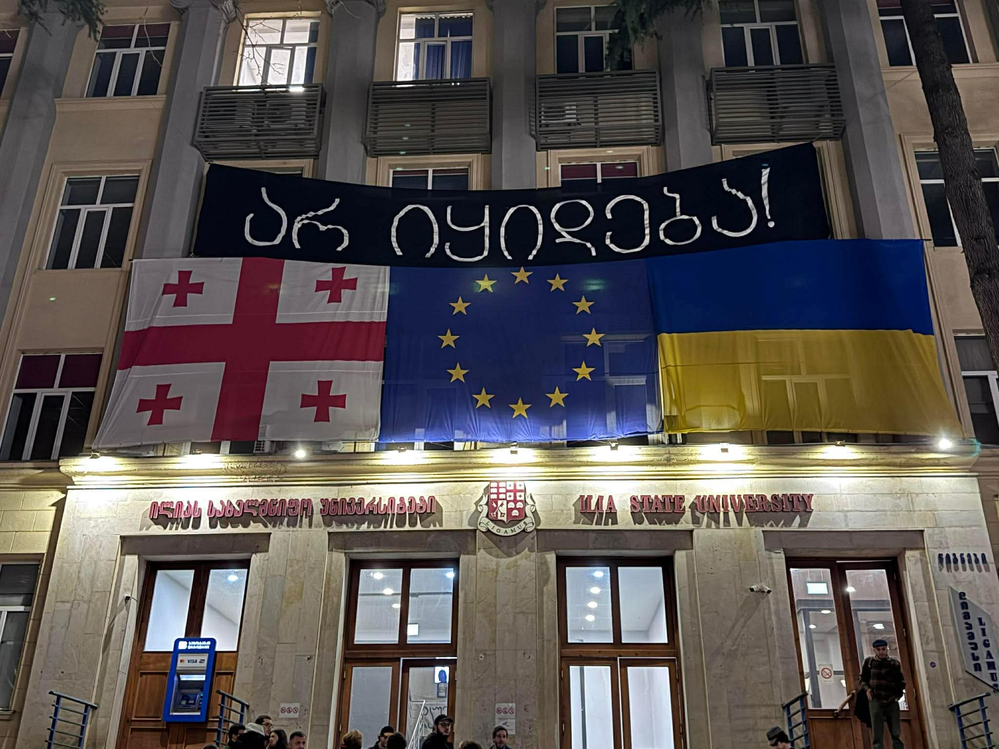 ილიას სახელმწიფო უნივერსიტეტთან საპროტესტო აქცია მიმდინარეობს