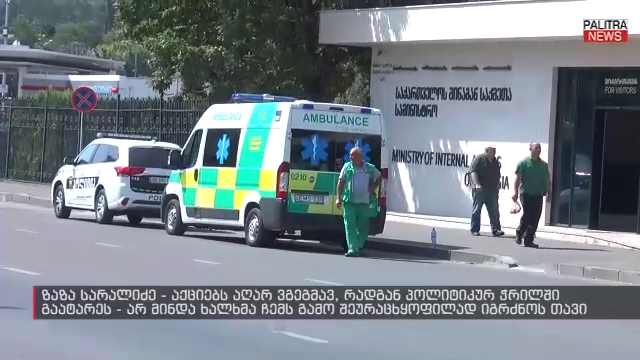რამდენჯერაც აქცია დავგეგმე, იმდენჯერ ხან პოლიტიკურ ჭრილში გაატარეს, ხან ისე გაატარეს. აღარ მინდა ჩემს გამო ხალხმა შეურაცხყოფილად იგრძნოს თავი, - ამის შესახებ ჟურნალისტებს ხორავას ქუჩაზე მოკლული დავით სარალიძის მამამ, ზაზა სარალიძემ ჟურნალისტებს განუცხადა. მისი თქმით, კონკრეტული აქცია ჯერჯერობით დაგეგმილი არ აქვს და ამ ეტაპზე მხოლოდ შსს-ს ეზოში გამოხატავს პროტესტს.კითხვაზე, ვის მიერ არის ორგანიზებული დღევანდელი აქცია, რომელიც შსს-სთან, 19:00 საათზეა დაანონსებული, სარალიძის თქმით, ამაზე არაფერი იცის და აქცია თვითონ არ დაუგეგმავს.
