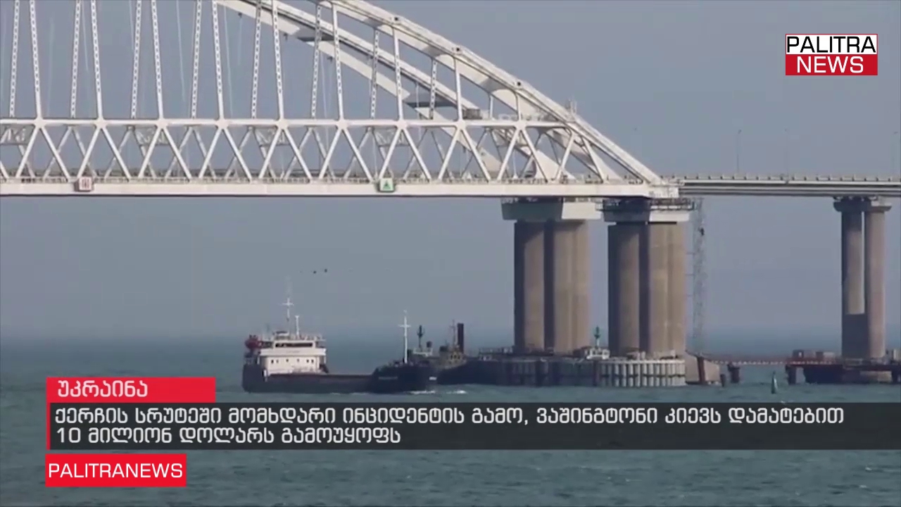 რუსეთის მიერ უკრაინული გემების დაკავებასთან დაკავშირებით, ვაშინგტონი კიევს დამატებით 10 მილიონი დოლარის ოდენობის დახმარებას გამოუყოფს. ამის შესახებ ოფიციალურ განცხადებას აშშ-ის სახემწიფო დემპარტამენტი ავრცელებს. განცახებაში ნათქვამია, რომ აღნიშნული თანხა უკრაინის სამხედრო პოტენციალის განმტიკიცებისთვის არის განკუთვნილი. ამასთან, აშშ რუსეთს მოუწოდებს, პატივი სცეს უკრაინის საერთაშორისოდ აღიარებულ ტერიტორიულ მთლიანობასა და სუვერენიტეტს და სამი დაკავებული გემი და მეზღვაურები დაუყოვნებლივ გაათავისუფლოს. შეგახსნებეთ, რუსეთის ტერიტორიულ წყლებში უკანონოდ შეჭრის ბრალდებით, ქერჩის სრუტეში, სამი უკარინული ხომალდი და 24 მეზღვაური რუსულმა მხარემ 25 ნოემბერს დააკავა. საერთაშორისო საზოგადოების მოთხოვნის მიუხედავად, მათ გათავისუფლებაზე მოსკოვი ამ დრომდე უარს აცხადებს.
