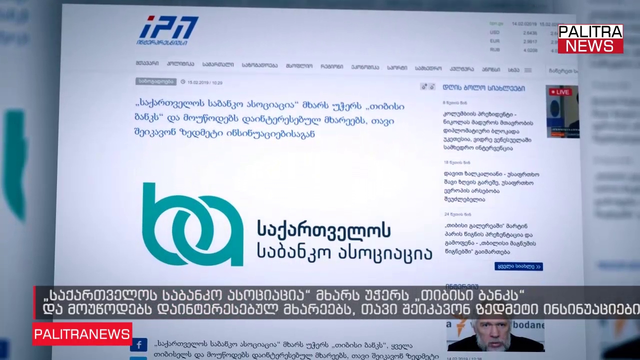 საქართველოს საბანკო ასოციაცია თი-ბი-სი ბანკის ირგვლივ განვითარებულ მოვლენებს განცხადებით გამოეხმაურა. განცხადებაში ნათქვამია, რომ "საქართველოს საბანკო ასოციაცია" მხარს უჭერს "თიბისი ბანკს" და მოუწოდებს დაინტერესებულ მხარეებს, თავი შეიკავონ ზედმეტი ინსინუაციებისაგან. მათივე პოზიციით, მისასალმებელია "თიბისი ბანკის" მენეჯმენტის გადაწყვეტილება, გამოიყენოს მის ხელთ არსებული სამართლებრივი გზები და სასამართლოს მეშვეობით დაიცვას აქციონერებისა და ბანკის ინტერესები. შეგახსენებთ, ეროვნული ბანკი "თიბისი ბანკისგან" სამეთვალყურეო საბჭოს თავმჯდომარისა და თავმჯდომარის მოადგილის მიერ საბჭოს წევრობის დატოვებას ითხოვს. მათივე ინფორმაციით, რეგულატორის მოთხოვნა 2007-2008 წელს შესრულებულ კონკრეტულ ტრანზაქციებს უკავშირდება.
