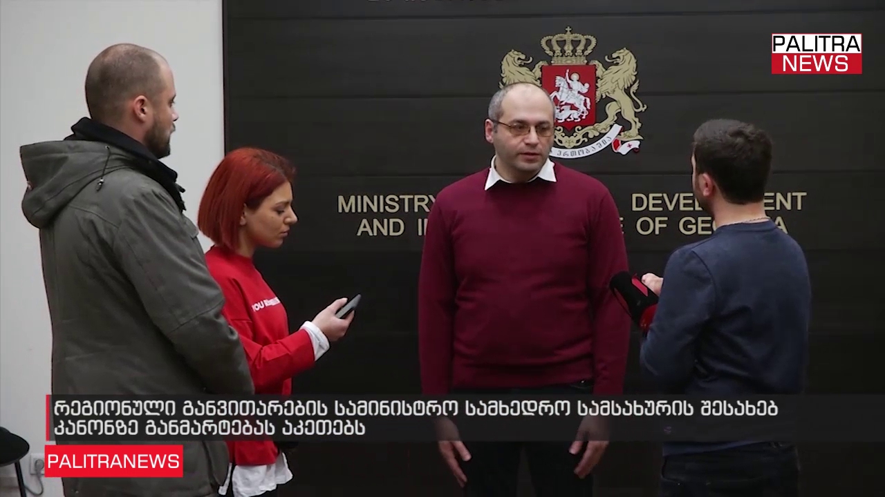 რეგიონული განვითარებისა და ინფრასტრუქტურის სამინისტრო "სამხედრო ვალდებულებისა და სამხედრო სამსახურის შესახებ" კანონთან დაკავშირებით განმარტებას აკეთებს. სამინისტროს გავრცელებულ განცხადებაში ნათქვამია, რომ "სამხედრო ვალდებულებისა და სამხედრო სამსახურის შესახებ" კანონი ეხება მოსახლეობის დიდ ნაწილს და არსებობს მაღალი საჯარო ინტერესი, ამდენად სამინისტრო მიმართავს ყველა დაინტერესებულ ჯგუფს და პოლიტიკურ პარტიებს, თავი შეიკავონ საკითხის არასწორი ინტერპრეტაციებისაგან. კერძოდ, კანონპროექტი ითვალისწინებს მათ შორის სამართლებრივ შეზღუდვებს საჯარო სამსახურში დანიშვნის კუთხით იმ მოქალაქეთა მიმართ, რომელთაც არ გაუვლიათ სამხედრო სავალდებულო სამსახური.