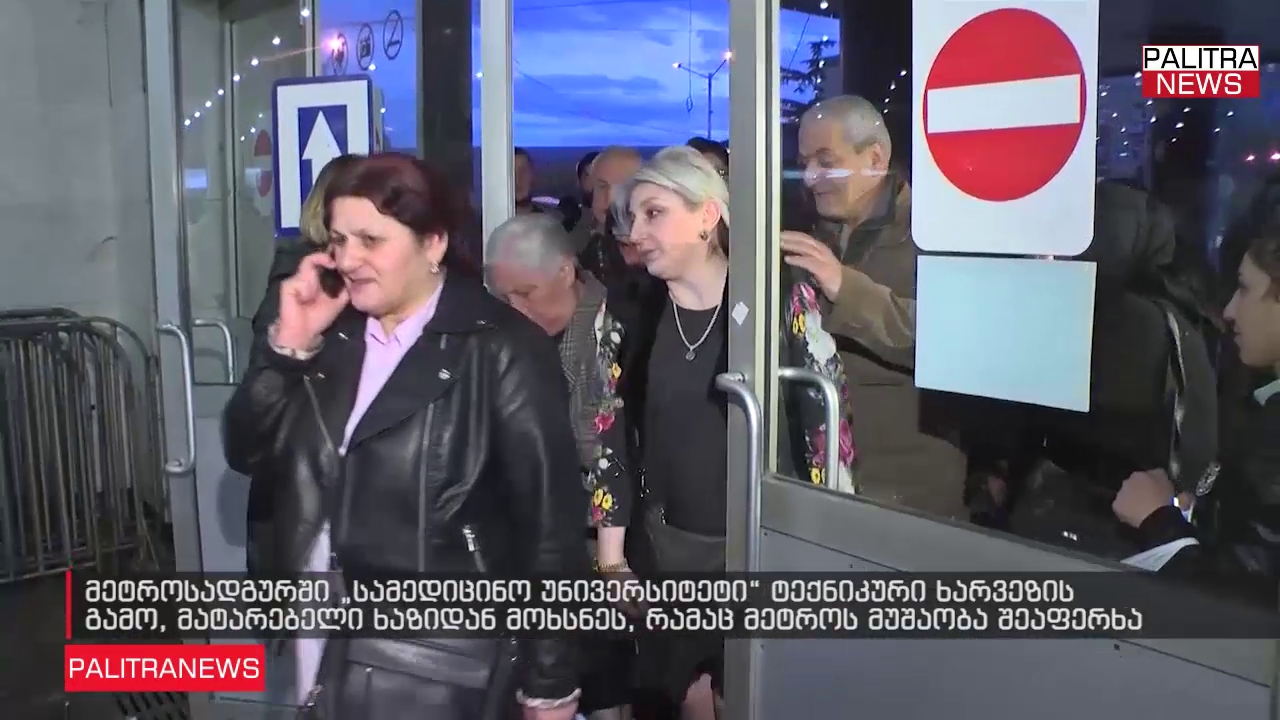 დღეს დილით თბილისის მეტროში მორიგი შეფერხება იყო. როგორც პალიტრანიუსს თბილისის მეტროპოლიტენის პრესსამსახურში განუცხადეს, მეტროსადგურში "სამედიცინო უნივერსიტეტი" ტექნიკური ხარვეზის გამო, საჭირო გახდა მატარებლის მგზავრებისგან დაცლა. მათივე განმარტებით, აღნიშნული მატარებლის ხაზიდან მოხსნის გამო, გადაადგილებას შორის ინტერვალი გაიზარდა, რამაც მეტროს სხვადასხვა სადგურებზე მგზავრთა გადატვირთულობა გამოიწვია.
