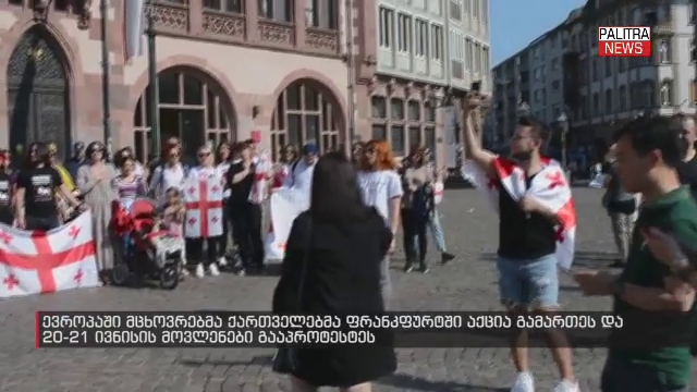 "არა საკუთარ მოქალაქეებზე ძალადობას", "ნუ მაბრმავებ", "ნუ მესვრი", "რუსეთი ოკუპანტია", - ამ ლოზუნგებით ევროპაში მცხოვრებმა ქართველებმა ფრანკფურტის მთავარ მოედანზე აქცია გამართეს. მათ 20 ივნისს საქართველოს პარლამენტში მომხდარი ფაქტი გააპროტესტეს და რუსეთის მიერ საქართველოს ტერიტორიების ოკუპაცია კიდევ ერთხელ დაგმეს.„მე ვარ საქართველოდან, სამაჩაბლოდან. სოფელ აჩაბეთში ვცხოვრობდი და დღევანდელი დღე ჩემთვის არის ემოციებით სავსე, ვდგავარ აქ, ევროპის შუაგულში და მინდა მივაწვდინო ყველას ხმა, რომ რუსეთი ოკუპანტია. ჩვენ მათ ყველაფერი წაგვართვეს, ვფიქრობ ერთად დგომით სამართლიანობას მივაღწევთ '' , - განაცხადა გერმანიაში მცხოვრებმა ქართველმა ვერა ჩლაიძემ.აქციის კიდევ ერთი მონაწილის, ქართველი სტუდენტის მარიამ ქურციკიძის თქმით, ახალგაზრდების დასახიჩრება უპატიებელია შეცდომაა.აქციის მონაწილეები აცხადებენ, რომ ფრანკფურტში მათი შეკრების მიზეზი ევროპისთვის იმის ჩვენებაა, რომ რუსეთი ოკუპანტია. ევროპაში მცხოვრები ქართველები სოლიდარობას უცხადებენ იმ ადამიანებს, რომლებიც თბილისში პარლამენტის შენობასთან საპროტესტო აქციებს მართავენს.