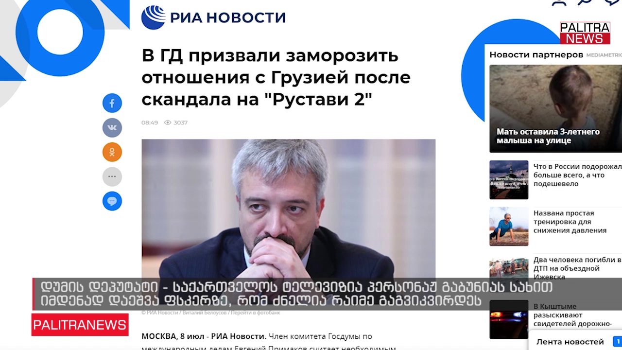 გიორგი გაბუნიას მიერ ვლადიმერ პუტინის გინების შემდეგ, რუსეთის სახელმწიფო სათათბიროს საერთაშორისო საქმეების კომიტეტის წევრი ევგენი პრიმაკოვი აუცილებლად მიიჩნევს, რუსეთ-საქართველოს "ურთიერთობის გაყინვას".