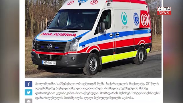 პოლონეთში, სამშენებლო ობიექტიდან საქართველოს მოქალაქე, 27 წლის ალექსანდრე ბუხულეიშვილი გადმოვარდა. როგორც მისი ბიძაშვილი ლელა ბუხულეიშვილი აცხადებს, დაშავებული ამ დროისთვის ხერხემლის მძიმე დაზიანებით კლინიკაში იმყოფება. მისივე თქმით, სამშენებლო ობიექტზე დაცული არ იყო უსაფრთხოების სტანდარტები. ალექსანდრე ბუხულეიშვილის ოჯახი საქართველოს ხელისუფლებას და შესაბამისს უწყებებს ყურადღების გამოჩენას და დახმარებას სთხოვს.