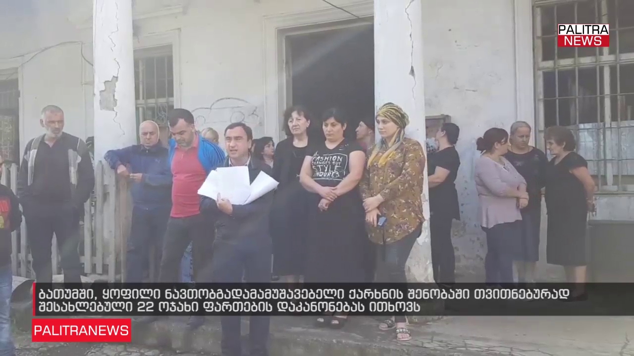 ბათუმში, ტბეთის 12 ნომერში მდებარე ნავთობგადამამუშავებელი ქარხნის ყოფილ შენობაში, 2013 წელს თვითნებურად შესახლებული 22 ოჯახი შენობის დაკანონებას ითხოვს. მათ ამ მოთხოვნით აქცია გამართეს და განაცხადეს, რომ აჭარის მთავრობას შენობის დაკანონების მოთხოვნით არაერთხელ მიმართეს, თუმცა უარი უთხრეს. მათივე თქმით, აჭარის მთავრობაში განუმარტეს, რომ შენობა დატოვონ და იმ მუნიციპალიტეტებში დაბრუნდნენ, სადაც თავდაპირველად ცხოვრობდნენ. აქციის მონაწილეების ინფორმციით ისინი შუახევიდან, ხულოდან და ქედიდან ეკომიგრანტები არიან და საცხოვრებელი სახლები არ გააჩნიათ.