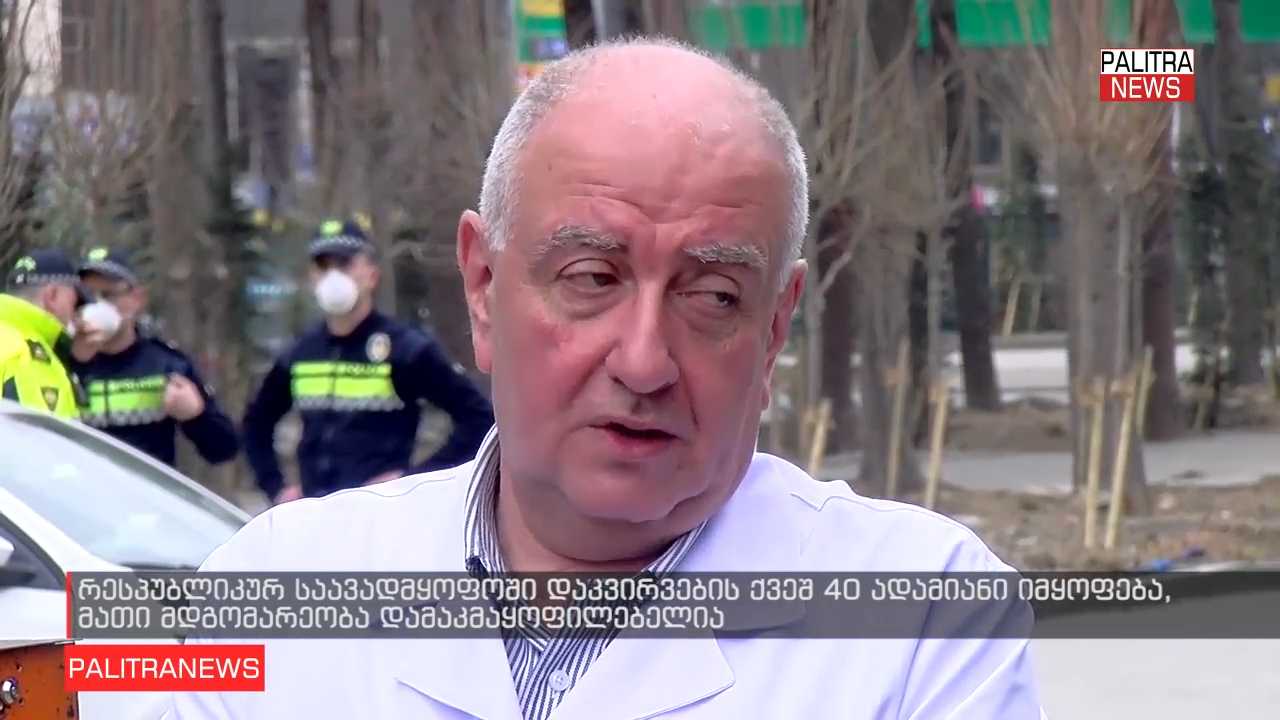 რესპუბლიკური საავადმყოფოში ამჟამად დაკვირვების ქვეშ 40 ადამიანი იმყოფება. კლინიკის დირექტორის ლევან გოფოძის განცხადებით, ყველა მათგანის მდგომარეობა დამაკმაყოფილებელია. მისივე თქმით, რაიმე განსაკუთრებულ ექსცესებს ადგილი არ ჰქონია. ლევან გოფოძე ვარაუდობს, რომ რესპუბლიკურ საავადმყოფოს დღეს ორი პაციენტი დატოვებს, რომლებისთვისაც საკარანტინო ვადა ამოიწურა. ამასთან, ექიმის თქმით, ადამიანებს, რომლებიც საკარანტინო სივრცეს ტოვებენ, ურჩევენ, მაქსიმალურად მოერიდონ საზოგადოებრივ კონტაქტებს.