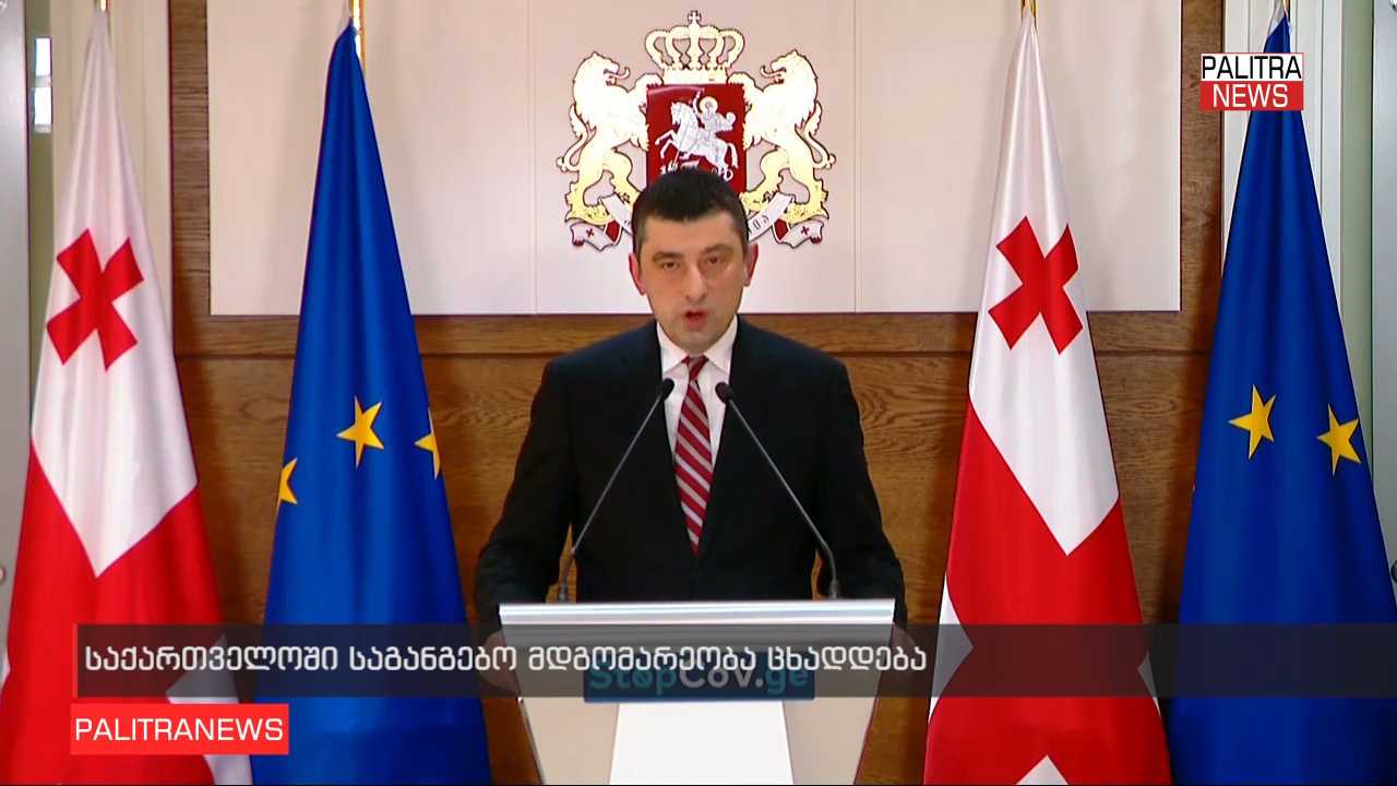 საქართველოში საგანგებო მდგომარეობა ცხადდება. შესაბამისი განცხადება მთავრობის ადმინისტრაციაში გამართულ საგანგებო ბრიფინგზე პრემიერ-მინისტრმა გიორგი გახარიამ გააკეთა. საქართველოს მთავრობა მიმართავს პრეზიდენტს, შემოიღოს საგანგებო მდგომარეობა მთელი ქვეყნის მასშტაბით 1 თვით, 2020 წლის 21 აპრილამდე, - განაცხადა გახარიამ. მისივე თქმით, ყველა ფიზიკური და იურიდიული პირი ვალდებულია დაიცვას საგანგებო მდგომარეობის რეჟიმი.