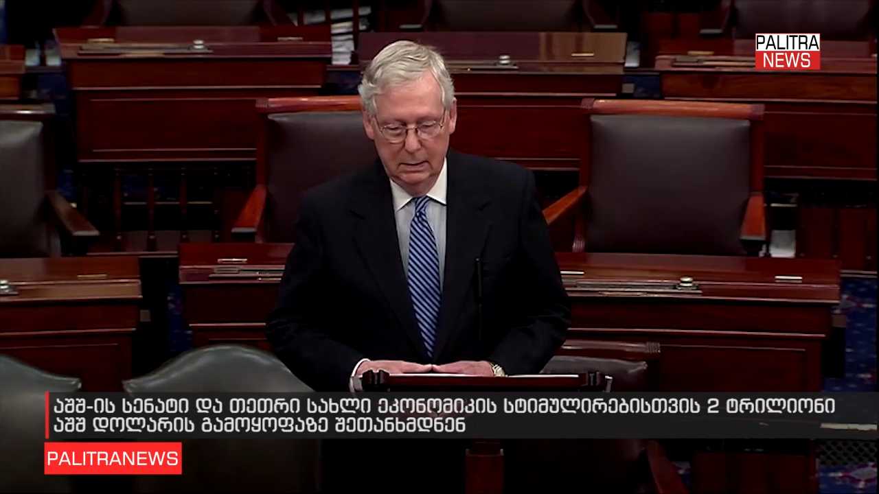 აშშ-ის სენატმა და თეთრმა სახლმა რამდენიმედღიანი მოლაპარაკებების შემდეგ ქვეყნის ეკონომიკის სტიმულირებისთვის 2 ტრილიონი აშშ დოლარის გამოყოფის შესახებ შეთანხმებას მიაღწიეს. ინფორმაციას CNN-ი ავრცელებს.