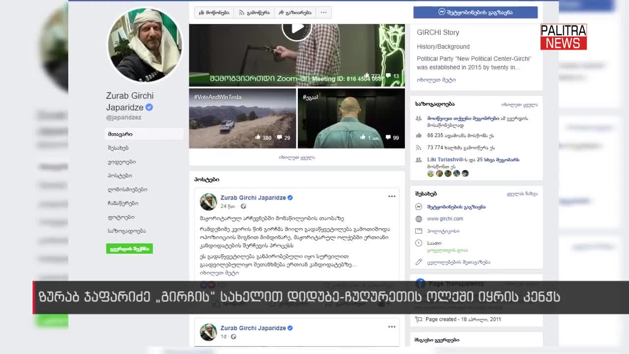 ზურაბ ჯაფარიძე „გირჩის“ სახელით დიდუბე-ჩუღურეთის ოლქში იყრის კენჭს - Palitra News