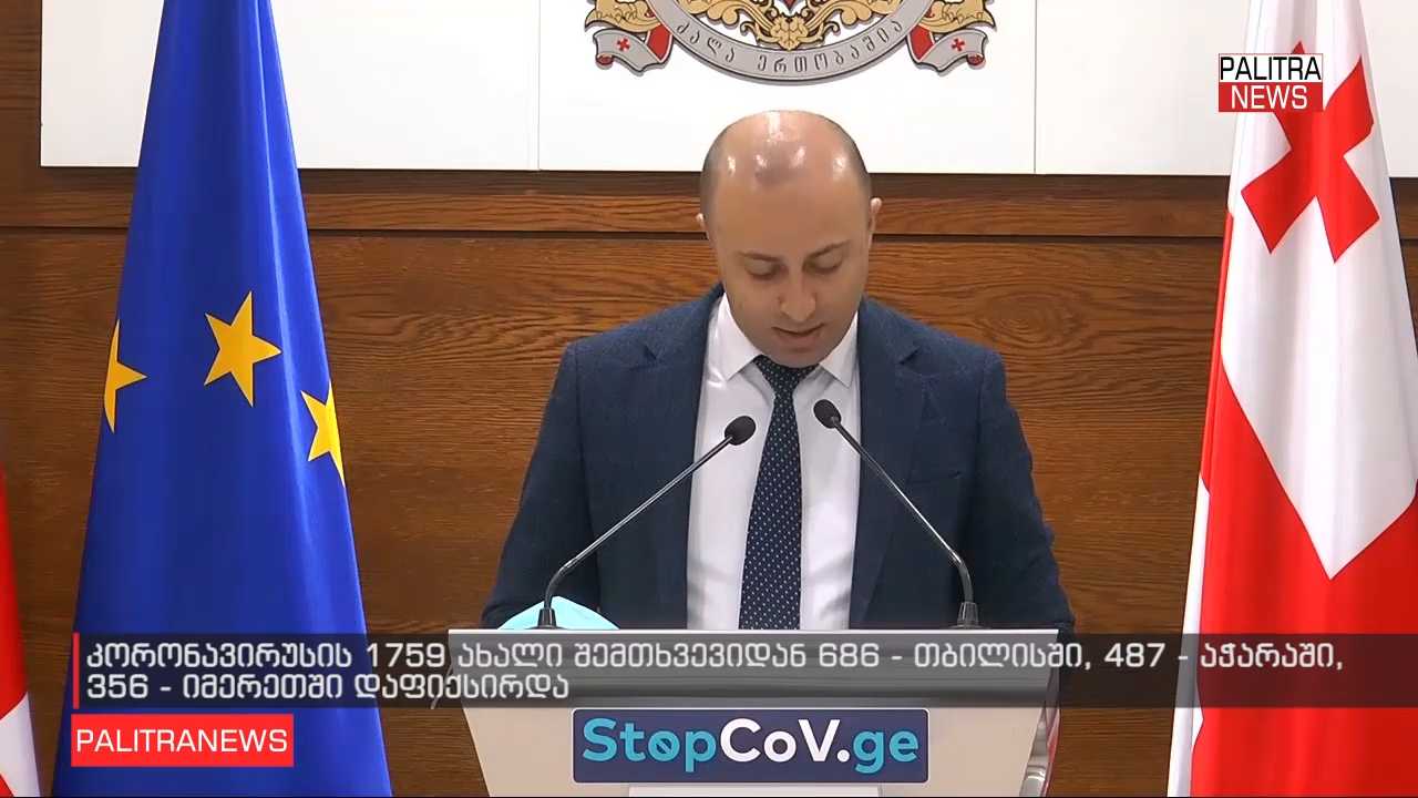 უწყებათაშორის საკოორდინაციო საბჭოსთან არსებული საოპერაციო შტაბის უფროსის მოადგილის, ბერდია სიჭინავას განცხადებით, კორონავირუსის 1759 ახალი შემთხვევიდან 686 თბილისში დაფიქსირდა. მისი თქმით, საქართველოში კორონავირუსის ინფიცირებული პაციენტებიდან 397 პირის ჯანმრთელობის მდგომარეობა მძიმეა.შეგახსენებთ ბოლო დღე ღამოს განმავლობაში 5 პაციენტი გარდაიცვალადა 350 გამოჯანმრთელდა.