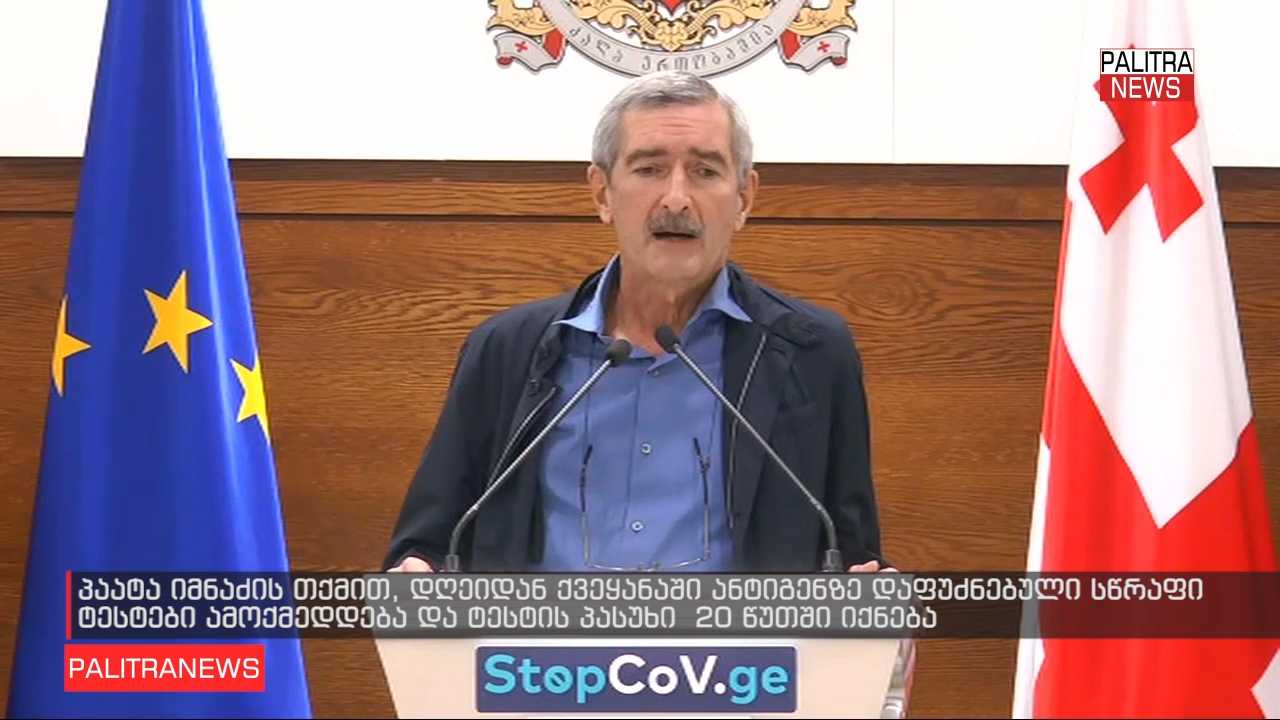 პაატა იმნაძის თქმით, დღეიდან ქვეყანაში ანტიგენზე დაფუძნებული სწრაფი ტესტები ამოქმედდება და ტესტის პასუხი 20 წუთში იქნება
