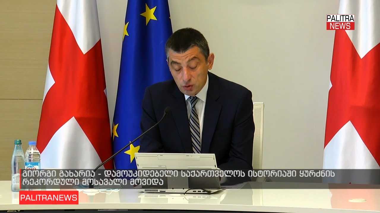 პრემიერ-მინისტრ გიორგი გახარიას განცხადებით, დამოუკიდებელი საქართველოს ისტორიაში, ყურძნის რეკორდული მოსავალი მოვიდა. როგორც მთავრობის სხდომაზე პრემიერ-მინისტრმა განაცხადა, ასევე წარმატებით მიმდინარეობს ატმისა და ვაშლის მოსავლის აღებაც. მისი თქმით, მეღვინეებმა 277 ათასი ტონა ყურძენი ჩაიბარეს მთავრობასთან და სახელმწიფოსთან ერთად.
