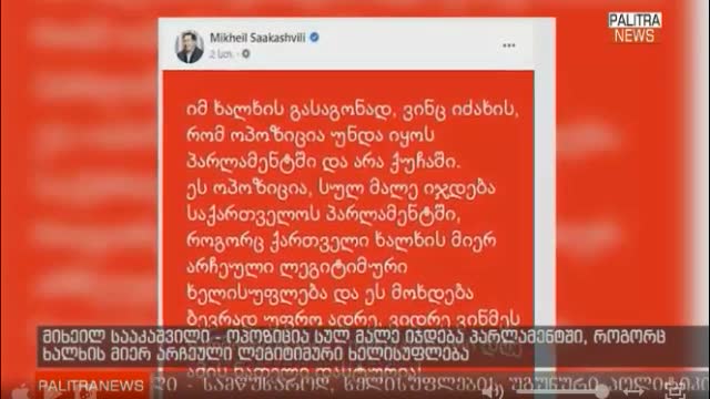 მიხეილ სააკაშვილი - ოპოზიცია სულ მალე იჯდება პარლამენტში, როგორც ხალხის მიერ არჩეული ლეგიტიმური ხელისუფლება.