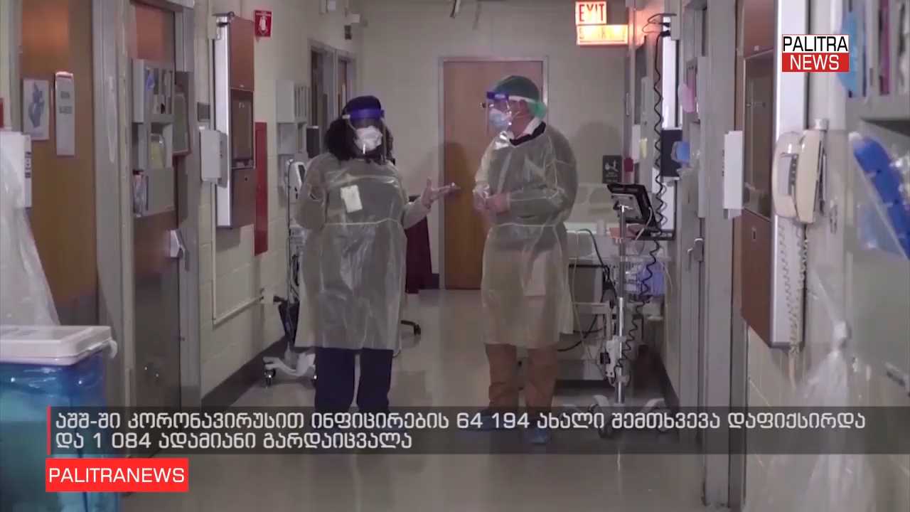 აშშ-ში გასული დღე-ღამის განმავლობაში, კორონავირუსით ინფიცირების 64 194 და გარდაცვალების 1 084 ახალი შემთხვევა დადასტურდა, - ამ ინფორმაციას CNN-ი ჯონს ჰოპკინსის უნივერსიტეტზე დაყრდნობით ავრცელებს.