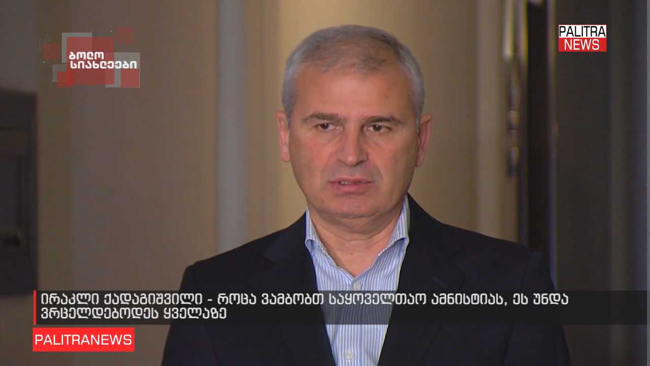 საპროცედურო საკითხთა და წესების კომიტეტის თავმჯდომარე ირაკლი ქადაგიშვილი 20-21 ივნისის მოვლენების დროს დაკავებულების ამნისტიის შესახებ საუბრობს და აცხადებს, რომ ამნისტია უნდა გავრცელდეს ყველაზე. მისივე თქმით, შეთანხმებაში ნათლად წერია, რომ ამნისტია უნდა შეეხოს 20-21 ივნისის მოვლენებთან დაკავშირებულ ყველა ასპექტსა და სუბიექტს.