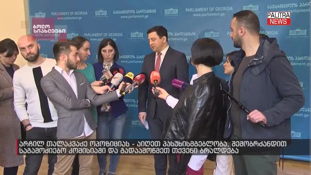 პარლამენტის ყოფილი თავმჯდომარე არჩილ თალაკვაძე ოპოზიციას მოუწოდებს საკუთარ ბრალდებებზე პასუხისმგებლობა აიღონ და საგამოძიებო კომისიაში შევიდნენ და მონაწილეობა მიიღონ ბრალდებების გადამოწმების პროცესში. როგორც თალაკვაძემ განმარტა, ოპოზიციის ბრალდება არჩევნების გაყალბებასთან დაკავშირებით ემსახურებოდა ერთადერთს, რომ როგორმე ძირი გამოეთხარა არჩევნებისთვის.