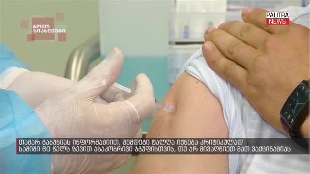 ჯანდაცვის მინისტრის მოადგილე თამარ გაბუნიას ინფორმაციით, შემდეგი ტალღა იქნება კრიტიკულად საშიში 60 წელს ზევით ასაკობრივი ჯგუფისთვის, თუ არ გაიკეთებენ ვაქცინას. მისი თქმით, ჰოსპიტალიზაციის და ლეტალური ყველაზე მეტი შემთხვევა 60 წლის ზემოთ ინფიცირებულ პირებში გვხდება, ამასთან ყველაზე ნაკლებია მათი ვაქცინაციის მაჩვენებელიც. გაბუნიას განცხადებით, კორონავირუსის ახალ ტალღებს მომავალი წლისთვის უნდა ველოდოთ.