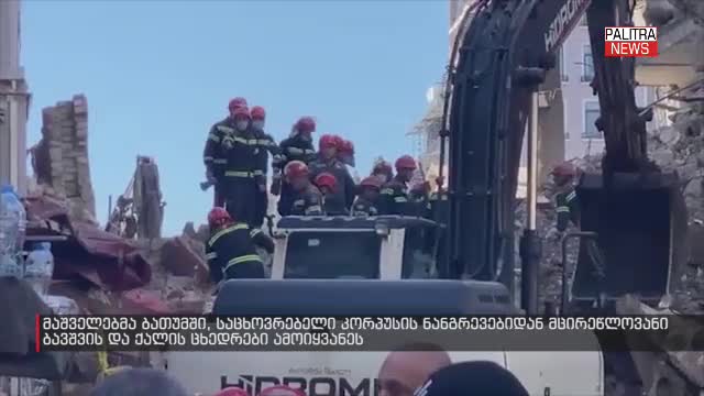 მაშველებმა ბათუმში, საცხოვრებელი კორპუსის ნანგრევებიდან მცირეწლოვანი ბავშვი და ქალი ამოიყვანეს. მაშველებმა ორივე ცხედარი ერთი და იმავე ლოკაციიდან ამოიყვანეს. ბათუმში, 26 მაისის ქუჩაზე გუშინ მომხდარი ტრაგედიის შედეგად 8 პირი გარდაიცვალა, აქედან 4 ერთი ოჯახის წევრია. ორი გარდაცვლილის ცხედარი კი, მაშველებმა ნანგრევებიდან რამდენიმე წუთის წინ ამოიყვანეს. რაც შეეხება 36 წლის მამაკაცს, რომელიც მაშველებმა კორპუსის ნანგრევებიდან გუშინ ამოიყვანეს, ის კლინიკაშია მოთავსებული და მისი მდგომარეობა მძიმეა. შინაგან საქმეთა სამინისტრომ მომხდარ ფაქტზე 3 პირი დააკავა. უწყების ინფორმაციით, ბათუმში, კორპუსის პირველ სართულზე ერთ-ერთი ბინის მესაკუთრის მითითებით სარემონტო სამუშაოები განხორციელდა, რამაც სადარბაზოს ჩამონგრევა გამოიწვია. დაკავებულია ბინის მეპატრონე და ორი მუშა.