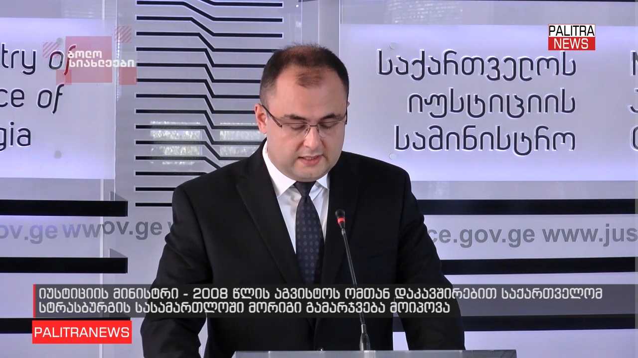 2008 წლის აგვისტოს ომთან დაკავშირებით საქართველომ სტრასბურგის სასამართლოში მორიგი გამარჯვება მოიპოვა, - ამის შესახებ იუსტიციის მინისტრმა რატი ბრეგაძემ ბრიფინგზე განაცხადა.