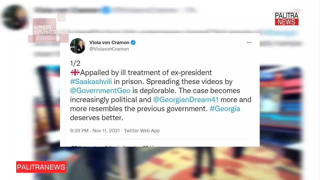 ქვეყანაში არსებულ სიტუაციას ევროპარლამენტარები კრიტიკულად აფასებენ. ვიოლა ფოლ კრამონი პენიტენციური სამსახურის მიერ მიხეილ სააკაშვილთან დაკავშირებით გავრცელებულ კადრებს ეხმაურება და ამბობს, რომ "ქართული ოცნება" უფრო და უფრო ემსგავსება წინა ხელისუფლებას, საქართველო კი უკეთესს იმსახურებს.