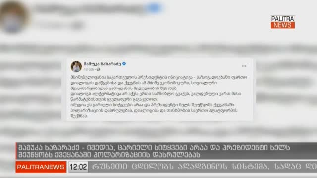 იმედია ეს ცარიელი სიტყვები არაა და პრეზიდენტი ხელს შეუწყობს ქვეყანაში პოლარიზაციის დასრულებას, - ამის შესახებ "ლელოს" ლიდერი მამუკა ხაზარაძე სოციალურ ქსელში წერს, რითაც ეხმაურება საქართველოს პრეზიდენტის სალომე ზურაბიშვილის გამოსვლას დემოკრატიის ვირტუალურ სამიტზე, რომელმაც პირობა დადო, რომ წამოიწყებს ინკლუზიურ პროცესს, საუბარს ეროვნული მასშტაბით. ხაზარაძის თქმით, სალომე ზურაბიშვილის ინიციატივა მნიშვნელოვანია.