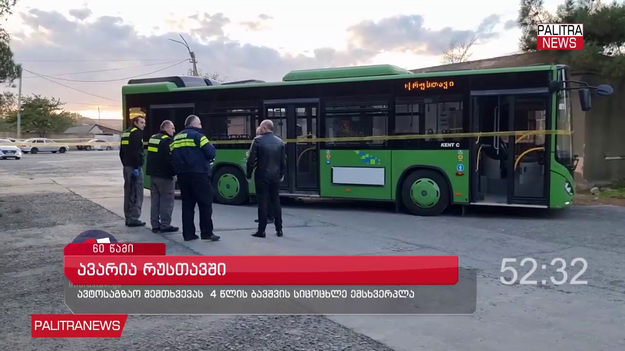 ავტობუსის მძღოლი, რომელიც რუსთავი-გარდაბნის გზაზე 4 წლის ბავშვს დაეჯახა, დაკავებულია. არსებული ინფორმაციით, შემთხვევის დროს მას ტერიტორია არ დაუტოვებია და პოლიციის განყოფილებაში ჩვენება მისცა.