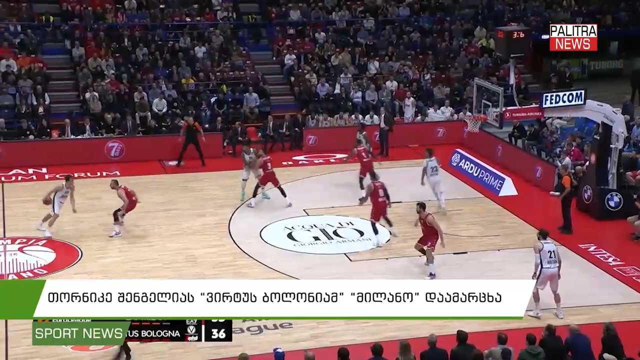 თორნიკე შენგელიას “ვირტუს ბოლონიამ” ევროლიგის მე-7 ტურში იტალიური დერბი მოიგო. ბოლონიელები სტუმრად “მილანოს” დაუპირისპირდნენ და შეხვედრა 5-ქულიანი უპირატესობით, ანგარიშით 64:59 მოიგეს.