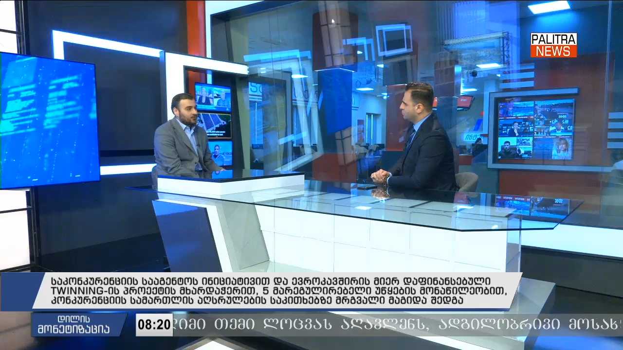 საკონკურენციის სააგენტოს ინიციატივით და ევროკავშირის მიერ დაფინანსებული TWINNING-ის პროექტის მხარდაჭერით, 5 მარეგულირებელი უწყების მონაწილეობით, კონკურენციის სამართლის აღსრულების საკითხებზე მრგვალი მაგიდა შედგა - "დილის მონეტიზაციის" სტუმარია კონკურენციისა და მომხმარებლის დაცვის სააგენტოს წარმომადგენელი ირაკლი შაკიაშვილი.