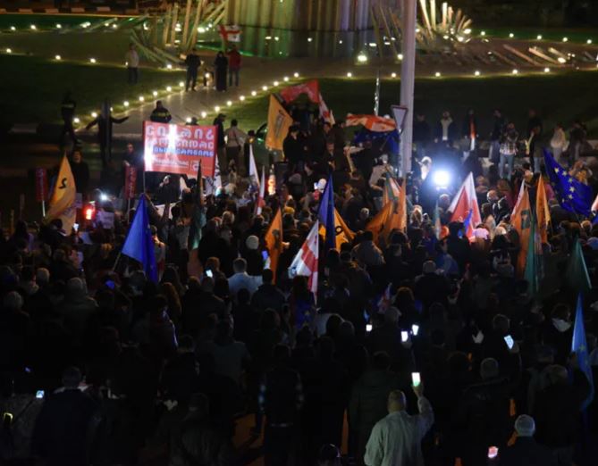 მსვლელობა, რომელიც მათ 26 ოქტომბრის საპარლამენტო არჩევნების შედეგების არალეგიტიმურად ცნობის მოთხოვნით, თბილისის სხვადასხვა ადგილებიდან დაიწყეს, საბოლოოდ გმირთა მოედანზე გაჩერდა.