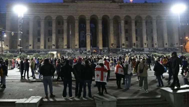 საქართველოს პარლამენტთან საპროტესტო აქციის მონაწილეები იკრიბებიან.