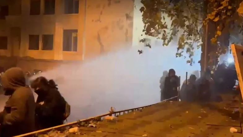 სამართალდამცველებმა პარლამენტის წინ, სადაც აქცია დაიწყო, დემონსტრანტების წინააღმდეგ წყლის ჭავლი გამოიყენეს.
