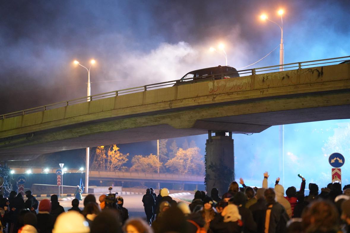 მანამდე ისინი რუსთაველის თეატრის წინ იყვნენ შეკრებილი, სადაც ხელოვნური ბარიკადები ჰქონდათ აღმართული და ქაშვეთის მიმდებარედ განლაგებული სპეცრაზმის მიმართულებით პერიოდულად პიროტექნიკას ისროდნენ. პარალელურად გაზის კაფსულებს ისროდა სპეცრაზმიც.