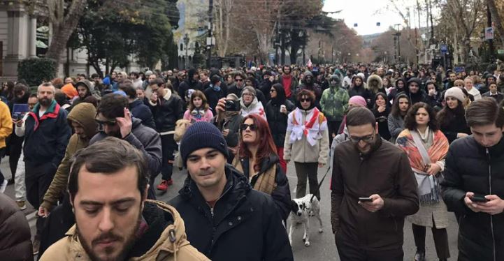 IT, HR, ტრენერებისა და ფინანსური სფეროს წარმომადგენლები რუსთაველის გამზირზე გაერთიანდნენ და მსვლელობას მართავენ. ამ დროისთვის ისინი რესპუბლიკის მოედნის მიმართულებით გადაადგილდებიან.