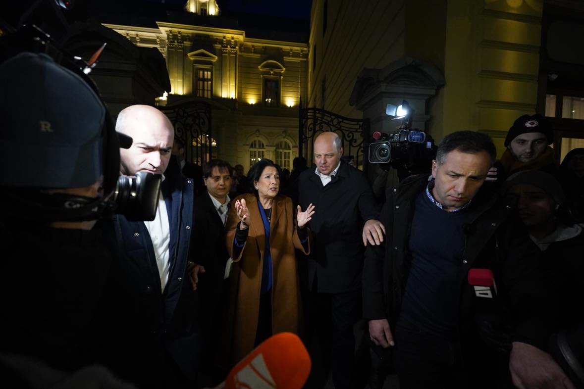 პრეზიდენტი, სალომე ზურაბიშვილი ორბელიანების სასახლესთან მისულ აქციის მონაწილეებს შეხვდა.