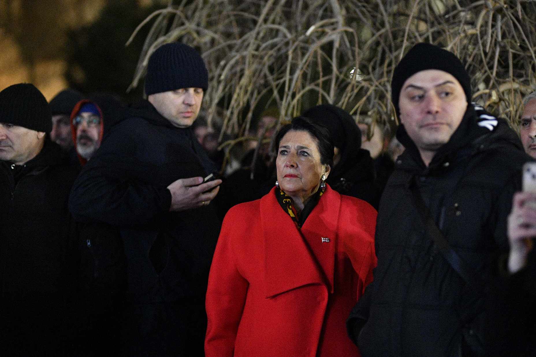 ვიდრე სალომე ზურაბიშვილი მოქალაქეებს სიტყვით მიმართავს, ფილმის, სახელწოდებით: “რესპუბლიკის დაცემა და წითელი ტერორი” ჩვენება მიმდინარეობს.