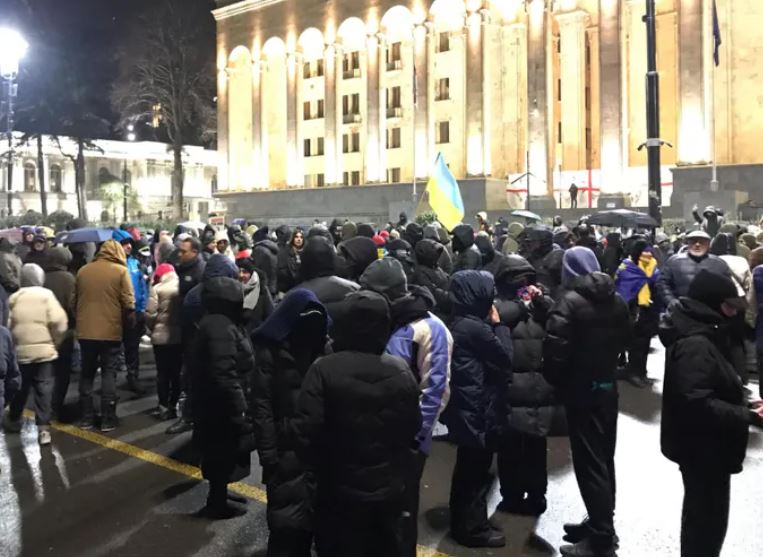 პარლამენტთან საპროტესტო აქცია განახლდა. პროტესტის მონაწილეებმა რუსთაველის გამზირი გადაკეტეს.