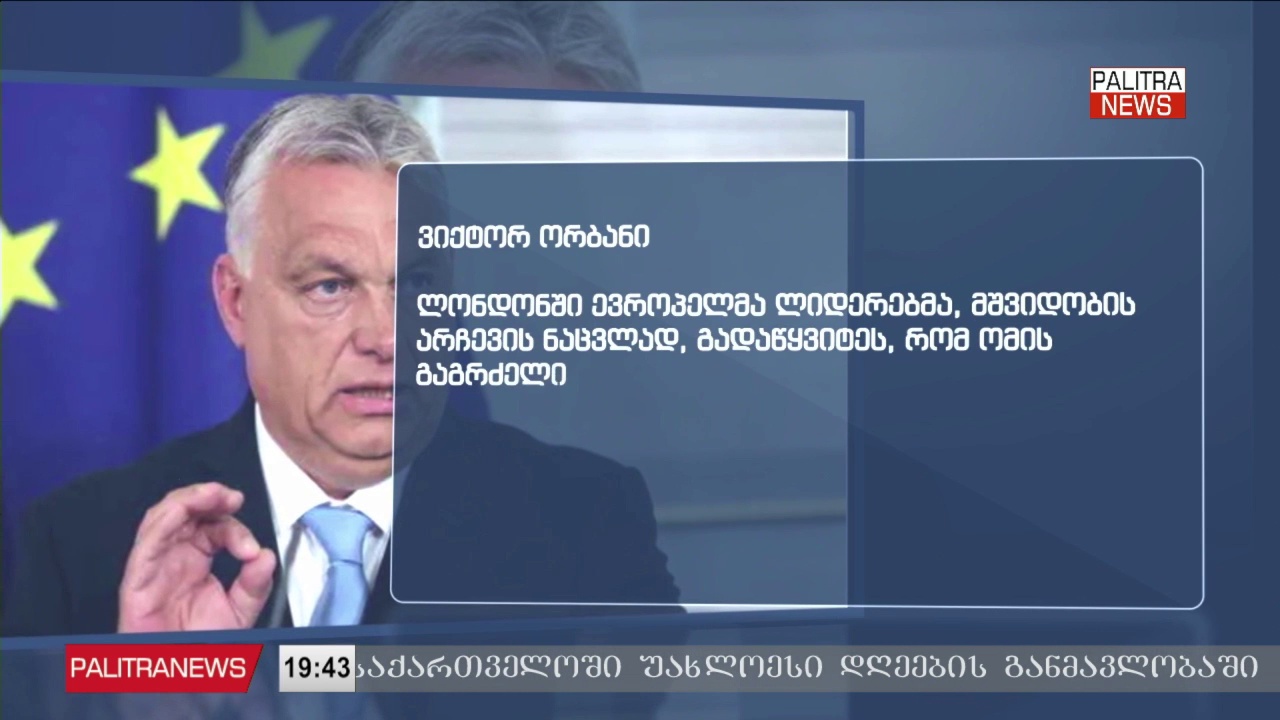 ლონდონში გაიმართა მსოფლიო ლიდერების სამიტი, რომელიც უკრაინის საკითხს შეეხო. მას 10-ზე მეტი ევროპელი ლიდერი, ნატოს გენერალური მდივანი და ევროკომისიის პრეზიდენტი დაესწრნენ. ლიდერებმა უკრაინისთვის თავდაცვის ხარჯების გაზრდის შესახებ ღიად ისაუბრეს. მოკავშირეები უკრაინაში მყარი და ხანგრძლივი მშვიდობისთვის აუცილებელი ქმედითი ნაბჯების საჭიროებაზე შეთანხმდნენ.