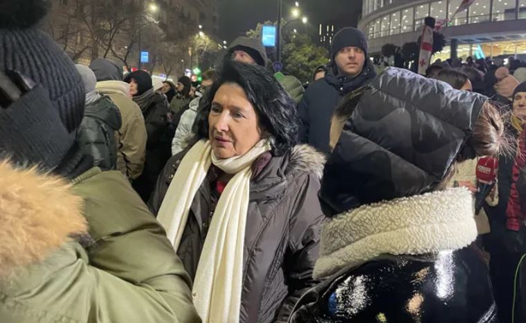 საქართველოს მეხუთე პრეზიდენტი სალომე ზურაბიშვილი ფილარმონიის დიდი საკონცერტო დარბაზის მიმდებარე ტერიტორიაზე მივიდა, სადაც „დედების მარშს" შეუერთდა.