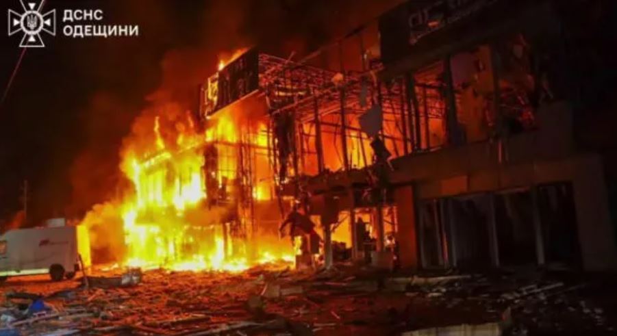 „რუსეთმა კვლავ შეუტია ოდესის რეგიონს, დაზიანდა სამოქალაქო ინფრასტრუქტურა. გაჩნდა მასშტაბური ხანძარი, დაიწვა სავაჭრო ცენტრი და მაღაზიები, დაზიანდა მრავალსართულიანი შენობა“, - აცხადებენ უკრაინის საგანგებო სიტუაციების სამსახურში.
