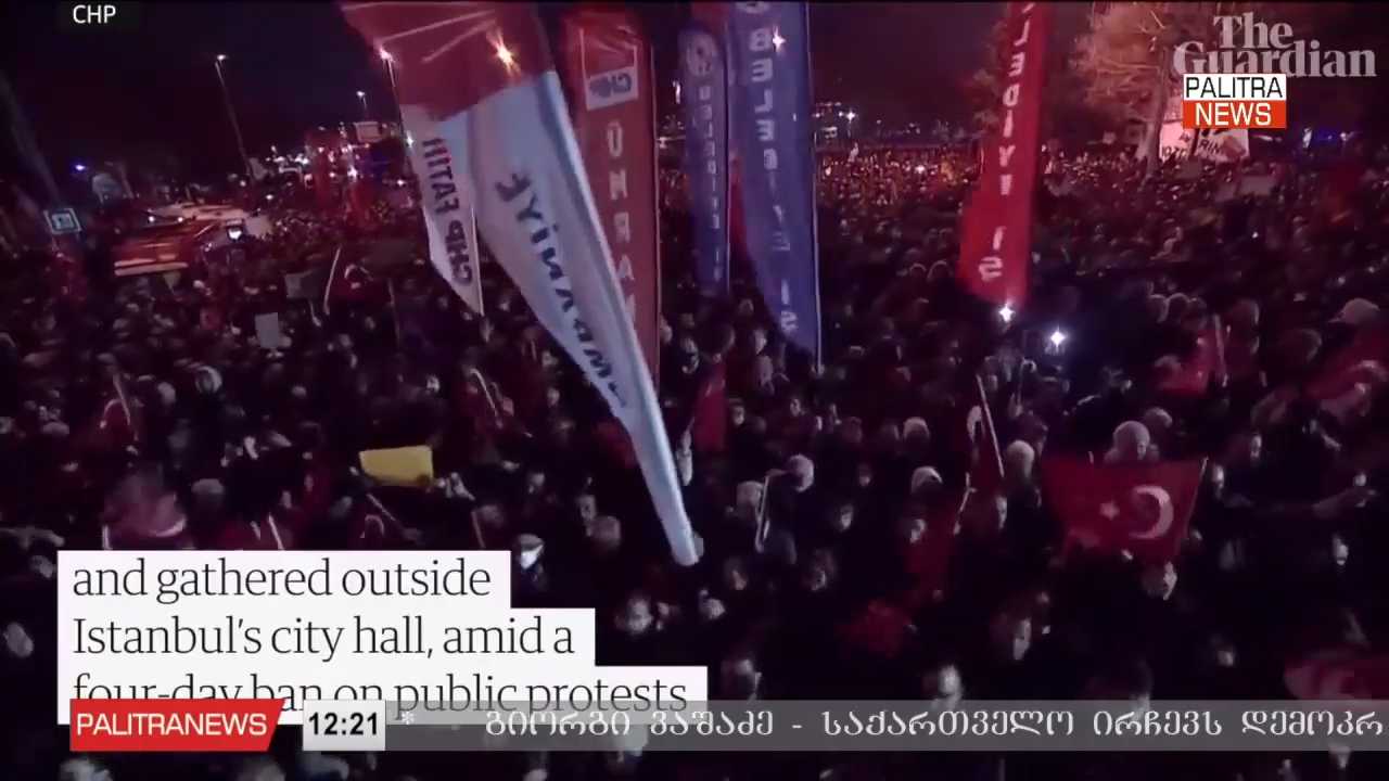 სტამბოლში ოპოზიციონერი მერის, ეკრემ იმამოღლუს მხარდამჭერი საპროტესტო აქცია გრძელდება. ქვეყნის პრეზიდენტის გაფრთხილების მიუხედავად, რომ საპროტესტო აქციების მიმართ ტოლერანტობა არ იქნება, ქუჩაში ასიათასობით ადამიანია გამოსული და ქალაქის მერის დაკავებას აპროტესტებს. აქცია ძირითადად მშვიდ ვითარებაში მიმდინარეობს. ვრცელდება ცნობები, რომ რამდენიმე ლოკაციაზე აქციის მონაწილეები ბარიკადების გარღვევას შეეცადნენ, რის გამოც სამართალდამცველებმა დემონსტრანტების უკან დასახევად წიწაკის სპრეი და წყლის ჭავლი გამოიყენეს. დემონსტრაციები იმართება დედაქალაქ ანკარასა და იზმირშიც, სადაც პოლიციამ აქციის მონაწილეთა დასაშლელად წყლის ჭავლი გამოიყენა. ეკრემ იმამოღლუ კორუფციისა და ტერორისტული კავშირების ბრალდებით ოთხშაბათს დააკავეს.