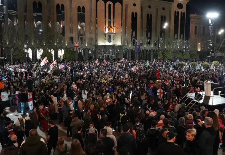 საქართველოს პარლამენტთან აქცია ლოზუნგით: „დგება ხალხის გაზაფხული“ მიმდინარეობს.
