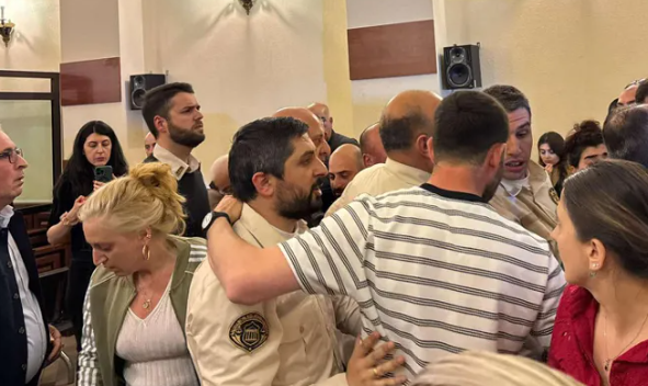 დარბაზში მანდატურის სამსახურის დამატებითი ჯგუფი მიიყვანეს. ისინი პოლიციის წარმომადგენლებთან ერთად სიტუაციის განმუხტვას ცდილობენ.