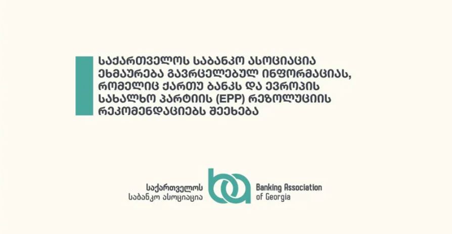 საქართველოს საბანკო ასოციაცია „ევროპის სახალხო პარტიის“ (EPP) რეზოლუციის რეკომენდაციებს ეხმაურება და აცხადებს, რომ ეს დოკუმენტი პოლიტიკური შინაარსისაა და „არ შეიძლება გახდეს ბანკის მიმართ მოქმედების სამართლებრივი ან რეგულაციური საფუძველი“.