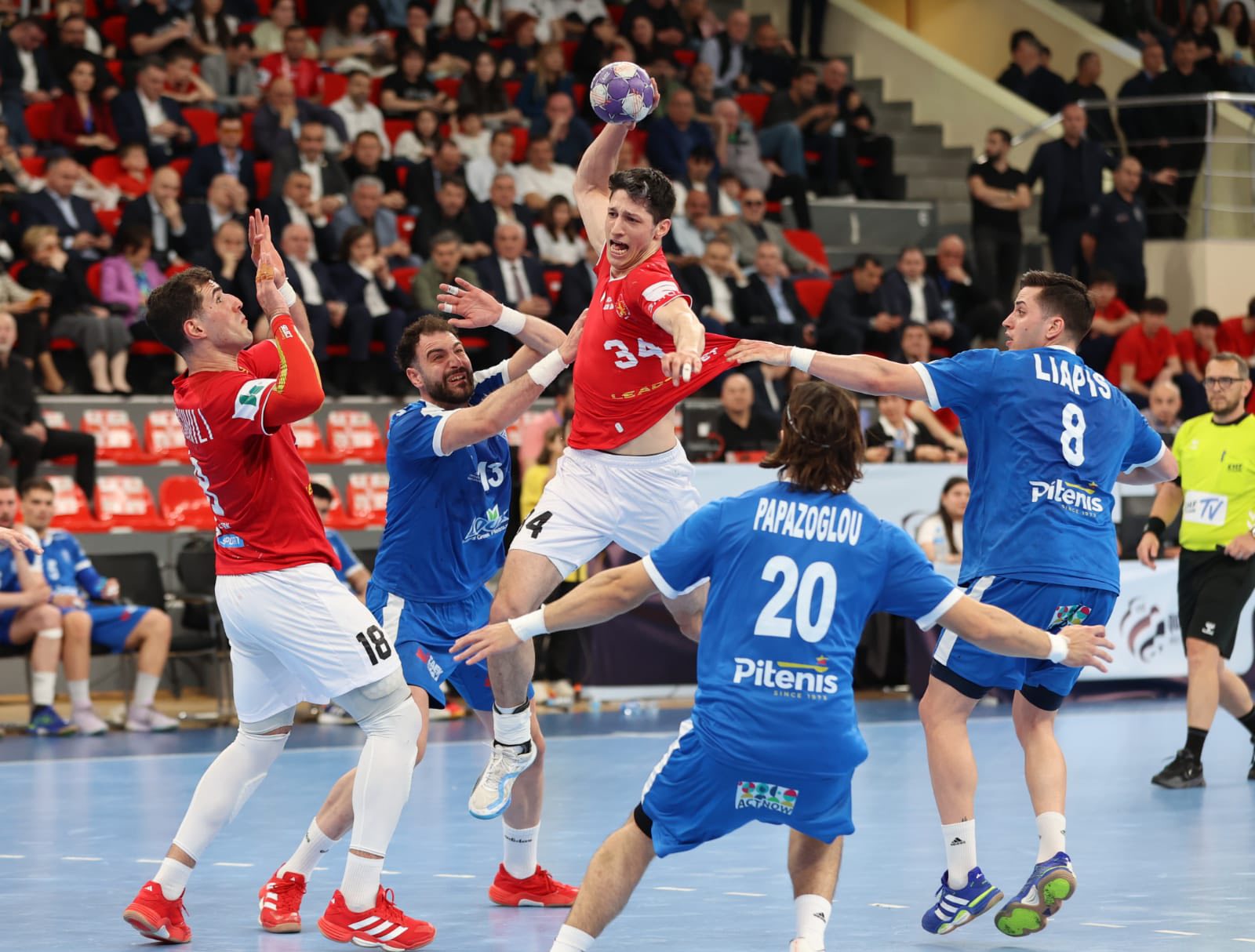 საქართველოს გუნდმა საშინაო შეხვედრაში საბერძნეთი 29:26 დაამარცხეს.