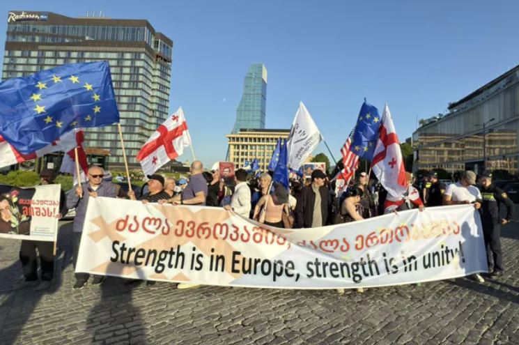„რესპუბლიკის მოედნიდან“ „ევროპის მოედნის“ მიმართულებით ევროპის დღისადმი მიძღვნილი მარში მიმდინარეობს.