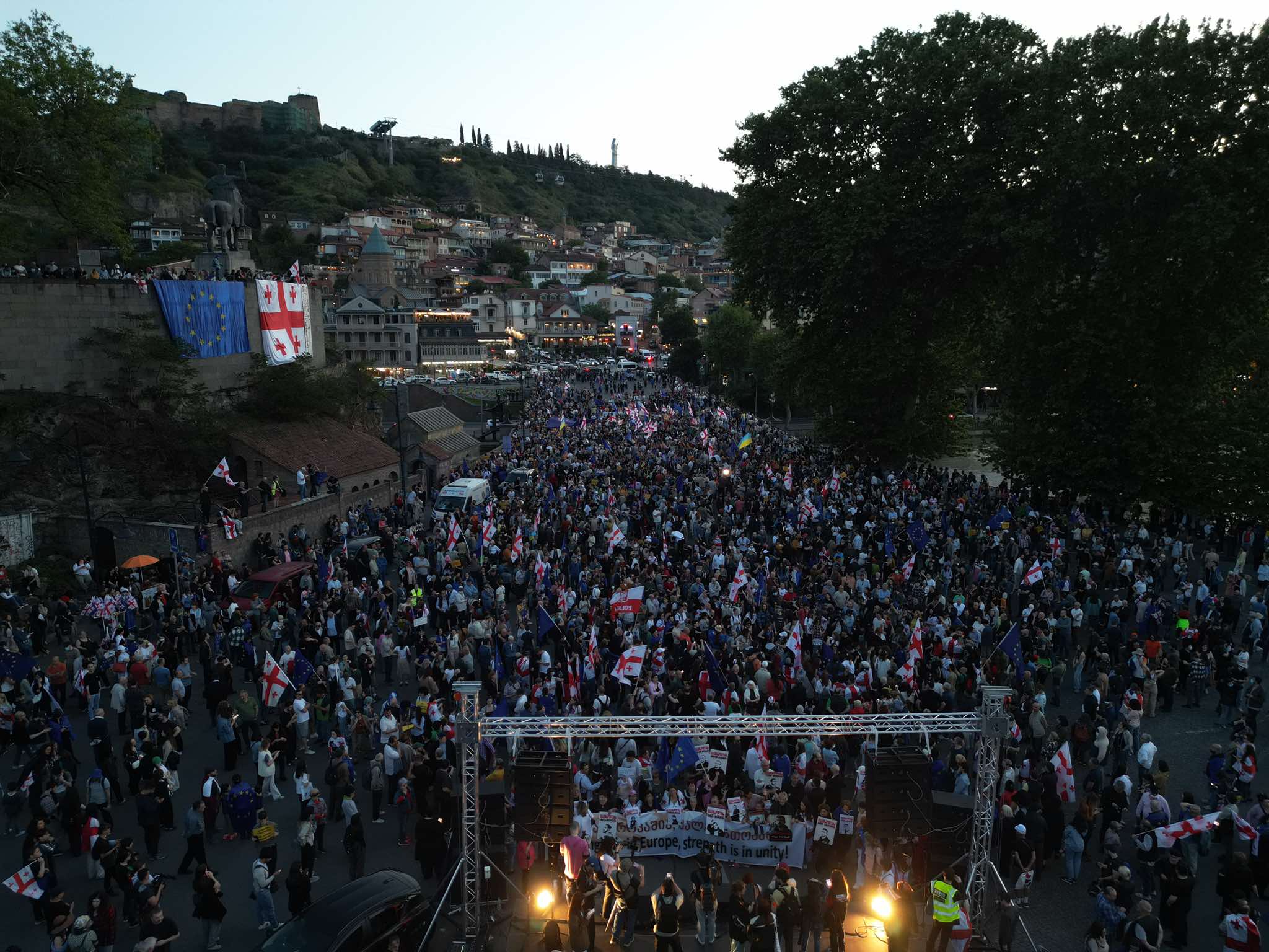 „ევროპის მოედანზე“ აქცია ლოზუნგით: „ძალა ევროპაშია, ძალა ერთობაშია“ მიმდინარეობს.