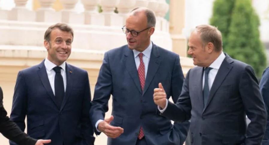 საფრანგეთის პრეზიდენტი ემანუელ მაკრონი, პოლონეთის პრემიერ-მინისტრი დონალდ ტუსკი და გერმანიის კანცლერი ფრედრიც მერცი ქართველი ხალხის დემოკრატიული და ევროპული მისწრაფებების მიმართ მხარდაჭერას გამოხატავენ და საქართველოს ხელისუფლების იმ ქმედებებს გმობენ, რომლებიც ქვეყანაში დემოკრატიულ უკუსვლას იწვევენ.