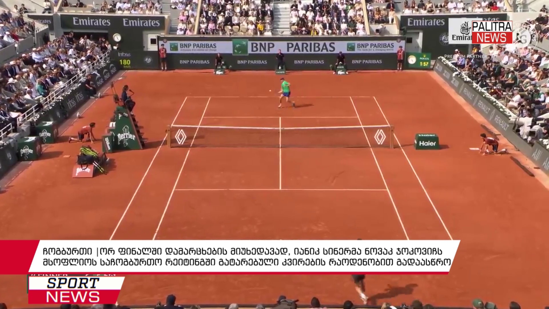 ჩოგბურთი | ორ ფინალში დამარცხების მიუხედავად, იანიკ სინერმა ნოვაკ ჯოკოვიჩს მსოფლიოს საჩოგბურთო რეიტინგში გატარებული კვირების რაოდენობით გადაასწრო