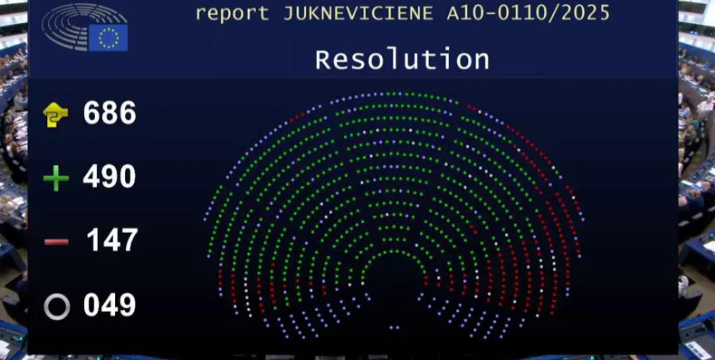 ევროპარლამენტმა 490 ხმით 147-ის წინააღმდეგ საქართველოს შესახებ რეზოლუცია შესწორებებით მიიღო.